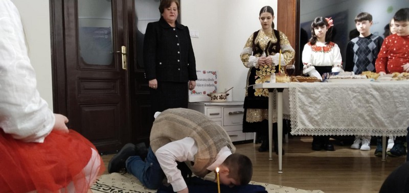 „Предмет влашки говор са елементима националне културе није само предмет који се учи у учионици, већ треба да врати децу коренима. На овим часовима учимо о обичајима Влаха, учимо много старих речи које смо ми заборавили, као и наше баке и деке. За вечерас смо, заједно са ученицима и учитељицом Снежаном Гугић из праховске школе, одлучили да прикажемо како Власи славе славу. Ово није дан славе, већ навечерје славе, обичај који смо желели да прикажемо. Ово је прича из мог детињства. Откако знам за себе, слава се овако славила. Навечерје славе је нешто најсвечаније у нашем дому. И данас осећам мирис сарме, пржене рибе, запршке, шта год да се спремало. У мојој породици то је била цела слава са пет оброка и трајала је три дана. Мој деда је сачувао све ове обичаје које сам ја желела да покажем. Сам чин клечања на кошуљи је од изузетне важности. Храна на слави није најбитнији детаљ, колико сама молитва. Она је упућена за све госте на слави, све домаћине, Богу и Богородици, молитва за добру жетву, за животиње које се чувају у дому. Жеља ми је била да се тај чин не заборави, јер се слава у Кобишници више не слави на тај начин“, испричала нам је Даниела Пејчић, учитељица влашког језика са елементима националне културе.